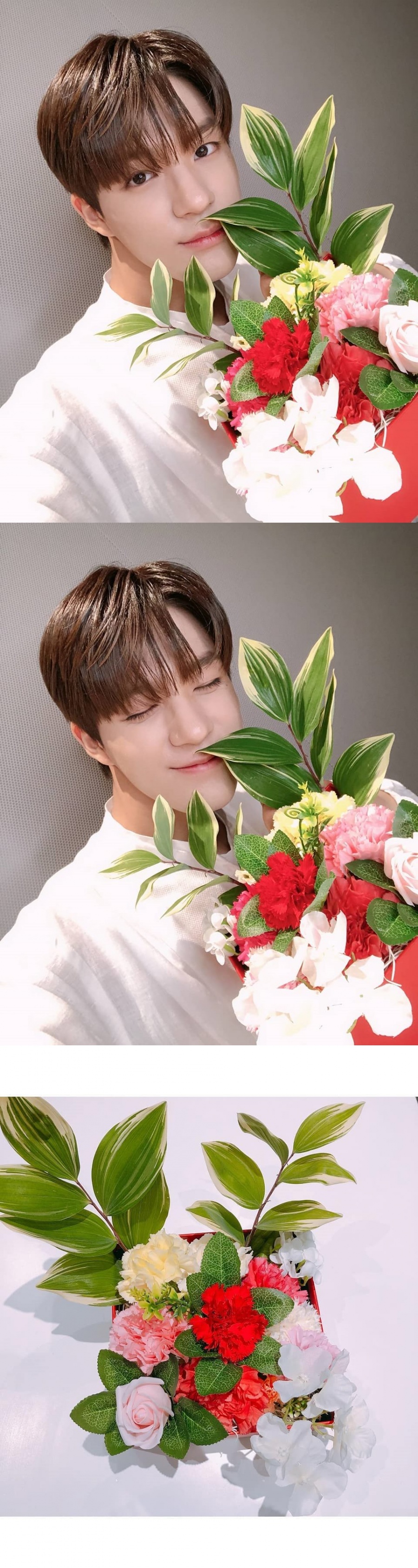 그룹 NCT 제노가 14일 공식 SNS에 여러 장의 사진을 게재, ‘꽃을 든 남자’ 면모를 선보였다. 사진 속 제노는 흰 셔츠를 입고 풍성한 꽃다발을 들고있는데, 향긋한 꽃향기를 맡는 표정을 보이는가 하면 그윽한 눈빛으로 카메라를 응시하기도.