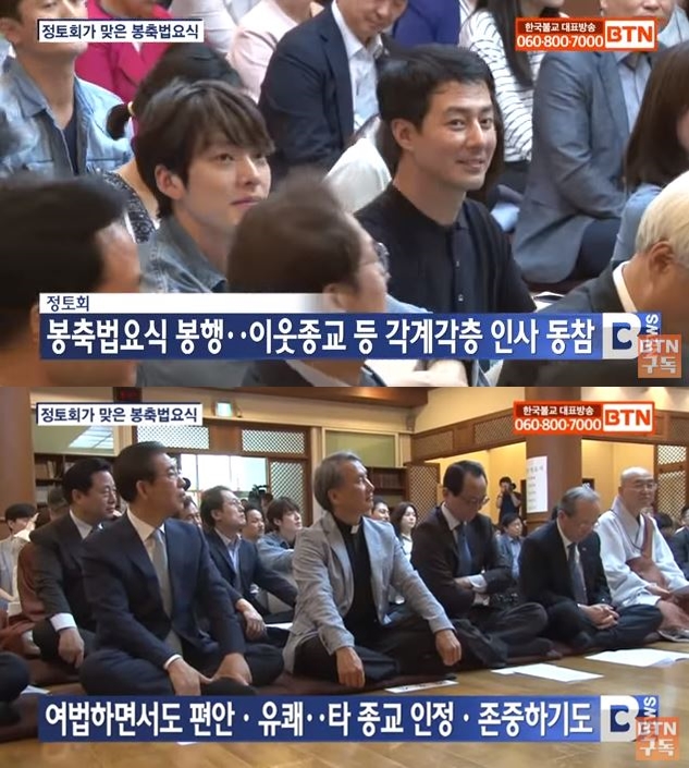 김우빈은 지난 13일 BTN불교TV에서 하루 전 부처님 오신 날을 맞아 열린 정토회 봉축법요식 현장 방송에서 조인성과 함께 카메라에 포착돼 시선을 집중시켰다.