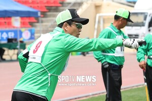 [스포티비뉴스=철원, 곽혜미 기자] 제 17회 대통령기 생활체육 전국게이트볼대회가 15일 오후 강원도 철원종합운동장에서 열렸다. 참가자가 지시를 내리고 있다. 스포티비뉴스=철원, 곽혜미 기자