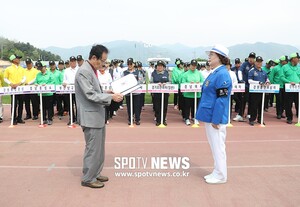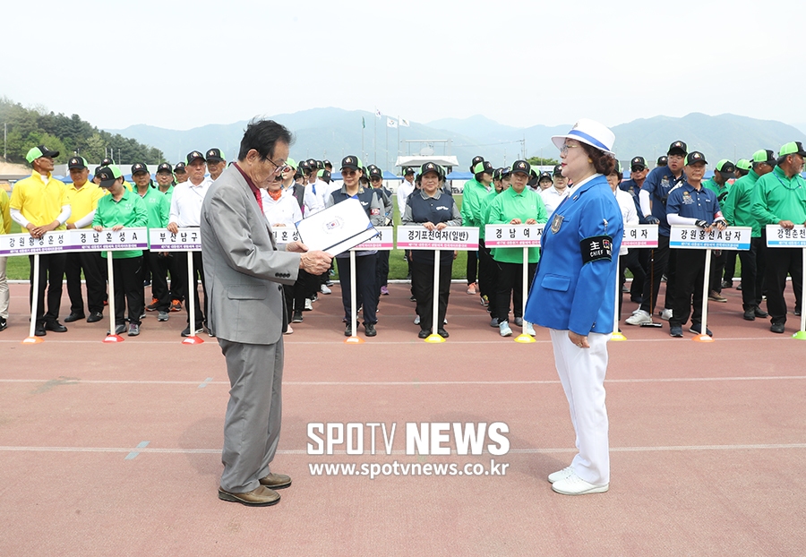[스포티비뉴스=철원, 곽혜미 기자] 제 17회 대통령기 생활체육 전국게이트볼대회가 15일 오후 강원도 철원종합운동장에서 열렸다. 폐회식이 진행되고 있다. 스포티비뉴스=철원, 곽혜미 기자