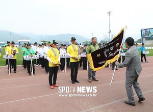[스포티비뉴스=철원, 곽혜미 기자] 제 17회 대통령기 생활체육 전국게이트볼대회가 15일 오후 강원도 철원종합운동장에서 열렸다. 경기 종료 후 시상식 모습. 스포티비뉴스=철원, 곽혜미 기자