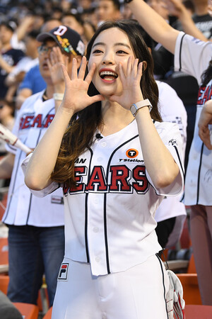 [스포티비뉴스=뉴스팀] 15일 잠실 야구장에서 열린 두산 베어스와 삼성 라이온즈 경기 중 휠라 핏 모델 선발대회 비욘드바디 시즌2 ‘더 체인지’ 참가자가 치어리딩을 펼쳤다. 더 체인지 MC 양정원이 무대를 지켜보고 있다.