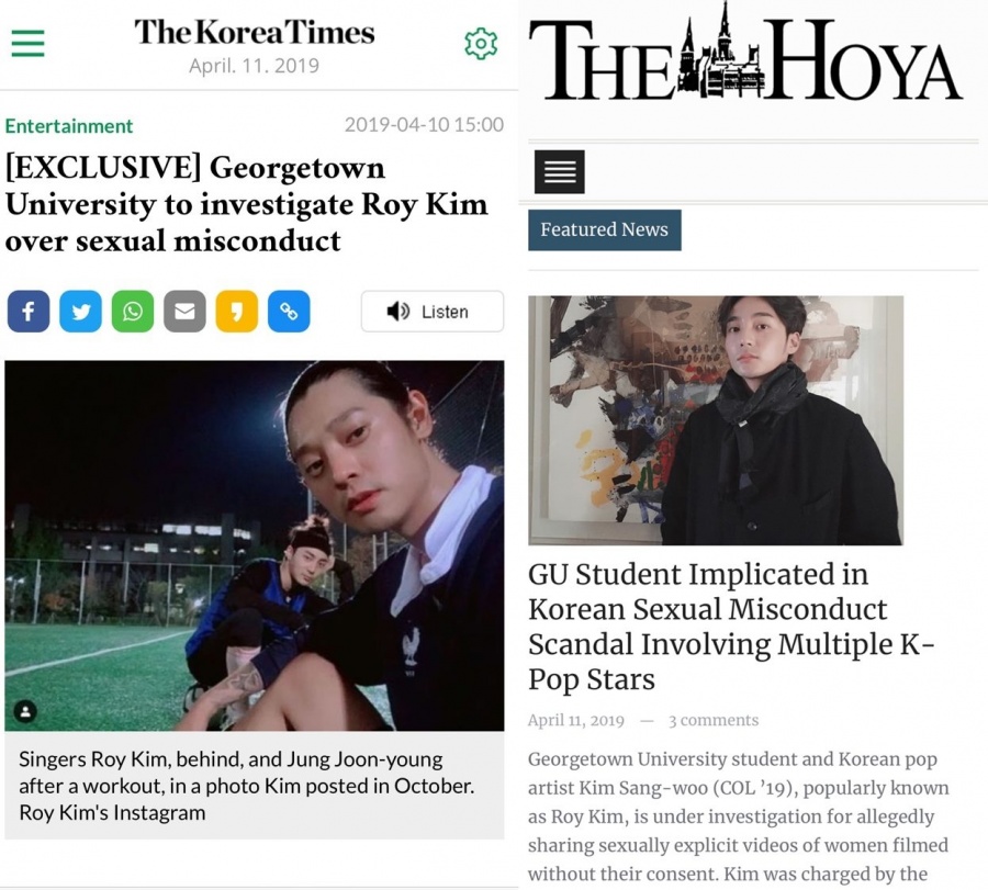 또한 앞서 지난달 11일에는 미국 매체인 코리아타임에서 조지타운대가 10일(현지 시간) 로이킴이 불법 음란물 촬영 및 유포 혐의(정보통신망법상 음란물 유포)로 이미 구속된 가수 정준영과 연관돼 음란물 유포에 가담한 것에 대한 자체 조사를 하겠다고 밝혔다고 보도하기도 했다. 그뿐만 아니라 조지타운대 교내신문 THE HOYA역시 지난달 11일(현지 시간) "재학생이 케이팝 스타 다수와 성추행 스캔들에 연루됐다"는 제목의 기사를 홈페이지 메인에 띄웠기에 로이킴이 졸업과 점점 멀어지는 듯 했다.
