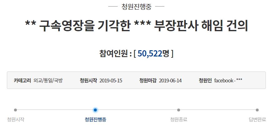 이후 16일 현재 약 3만 여명이 해당 해임 청원에 동의한 상태다.