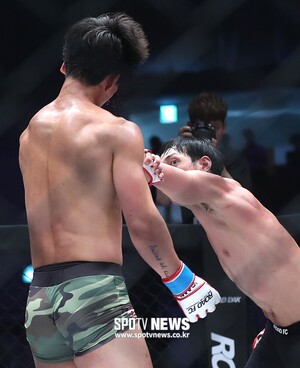 [스포티비뉴스=제주, 곽혜미 기자] 로드FC 053 제주 대회가 18일 오후 제주 제주시 오라동 한라체육관에서 열렸다. 윤태영이 펀치를 날리고 있다. 스포티비뉴스=제주, 곽혜미 기자