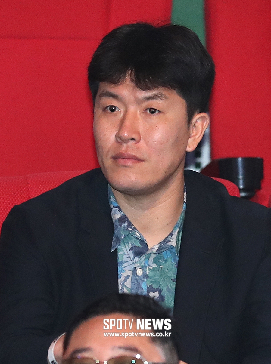 [스포티비뉴스=제주, 곽혜미 기자] 로드FC 053 제주 대회가 18일 오후 제주 제주시 오라동 한라체육관에서 열렸다. 김병현이 경기를 지켜보고 있다. 스포티비뉴스=제주, 곽혜미 기자