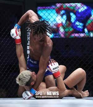 [스포티비뉴스=제주, 곽혜미 기자] 로드FC 053 제주 대회가 18일 오후 제주 제주시 오라동 한라체육관에서 열렸다. 만수르 바르나위가 권아솔에게 공격을 시도하고 있다. 스포티비뉴스=제주, 곽혜미 기자