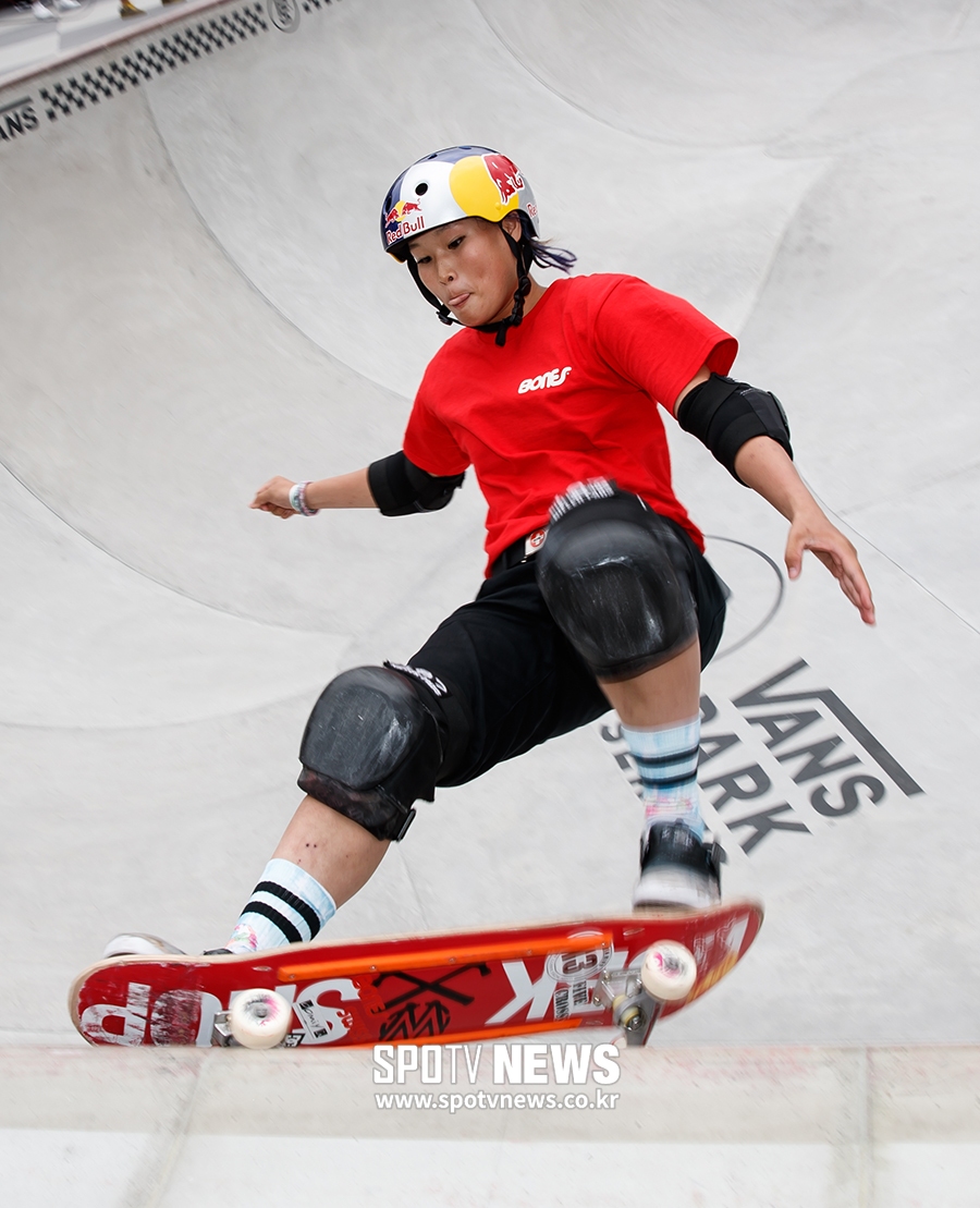 [스포티비뉴스=상하이(중국), 한희재 기자] 2019 반스 파크 시리즈 프로 투어 인 상하이(VPS)가 18일 중국 상하이 양푸 리버사이드 쉽야드 파크에서 열렸다. 사쿠라 요소즈미가 스케이팅을 하고 있다.