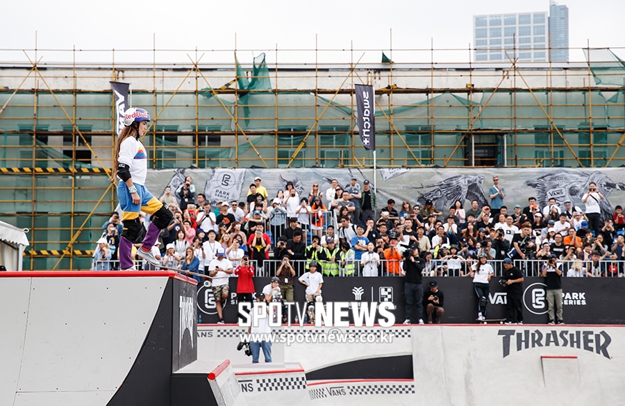 [스포티비뉴스=상하이(중국), 한희재 기자] 2019 반스 파크 시리즈 프로 투어 인 상하이(VPS)가 18일 중국 상하이 양푸 리버사이드 쉽야드 파크에서 열렸다. 인디아라 에이습이 스케이팅을 위해 심호흡을 하고 있다. 스포티비뉴스=상하이(중국), 한희재 기자