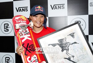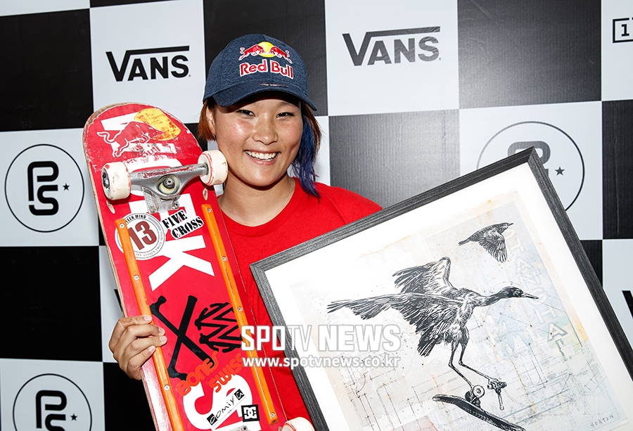 [스포티비뉴스=상하이(중국), 한희재 기자] 2019 반스 파크 시리즈 프로 투어 인 상하이(VPS)가 18일 중국 상하이 양푸 리버사이드 쉽야드 파크에서 열렸다. 우승을 차지한 사쿠라 요소즈미가 사진 촬영을 위해 포즈를 취하고 있다. 스포티비뉴스=상하이(중국), 한희재 기자