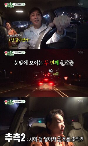 여전한 넉살로 김수미를 위해 상황실에 전화한 탁재훈을 믿지 않았으나 실제로 차가 가까워지자 신호등이 초록색으로 변했다. "난 한 번도 안 서"라고 허세를 부리는 탁재훈을 보며 이상민은 자동 센서가 아니냐고 추측했고, 김수미는 차에 뭘 달아 신호를 조작하는 거라고 말했다.
