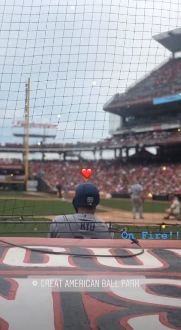 공개된 사진 속에는 경기장 펜스 넘어 보이는 류현진의 뒷모습이 담겨있다. 특히 경기를 관람한 배지현은 류현진의 모습과 함께 하트 모양 스티커를 붙여 애정을 드러냈다.