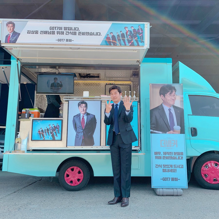 가장 먼저 공개된 사실은 김상중이 갓세븐의 컴백 라이브 토크의 MC를 맡는다는 것이다. 이후 갓세븐은 최근 김상중이 주연으로 활약 중인 MBC 드라마 '더 뱅커' 촬영장에 간식차를 보내며 친분을 과시하기도 했다.