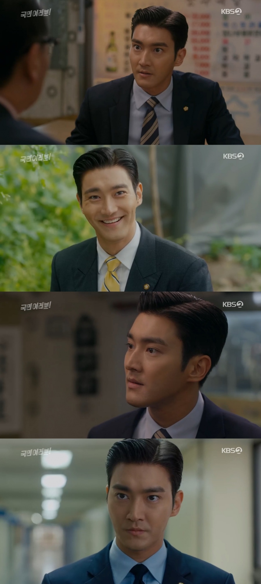 최시원은 KBS2월화드라마 ‘국민 여러분!’(연출 김정현, 김민태, 극본 한정훈)에서 얼떨결에 국회의원까지 된 베테랑 사기꾼 양정국 역할을 맡아 활약 중이다.