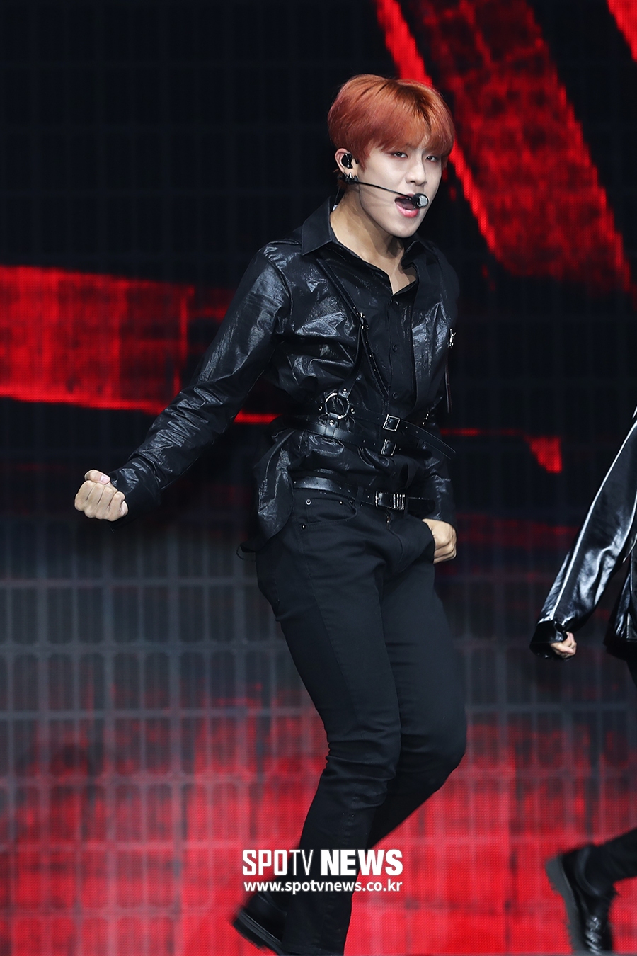 [스포티비뉴스=서울, 곽혜미 기자] 브랜뉴뮤직의 신인 보이그룹 AB6IX (에이비식스) 데뷔 앨범 'B:COMPLETE (비컴플릿)' 발매 기념 쇼케이스가 22일 오후 서울 송파구 방이동 올림픽공원 올림픽홀에서 열렸다. 안현모가 사회를 보고 있다. 박우진이 무대를 펼치고 있다.