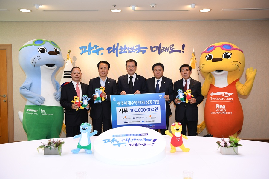 이날 대한건설협회 등 건설업계는 2019광주세계수영선수권대회의 성공개최를 위해 1억 원을 기부하였다.