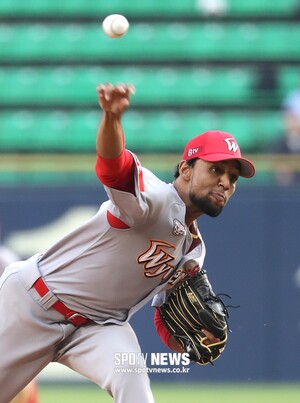 [스포티비뉴스=서울, 곽혜미 기자] 2019 신한은행 MY CAR KBO리그 LG 트윈스와 SK 와이번스의 경기가 22일 오후 서울 잠실야구장에서 열렸다. 1회말 SK 선발 산체스가 역투하고 있다.