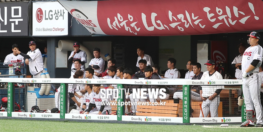 [스포티비뉴스=서울, 곽혜미 기자] 2019 신한은행 MY CAR KBO리그 LG 트윈스와 SK 와이번스의 경기가 22일 오후 서울 잠실야구장에서 열렸다. 1회말 LG 선수들이 그라운드를 바라보고 있다.