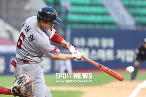 [스포티비뉴스=서울, 곽혜미 기자] 2019 신한은행 MY CAR KBO리그 LG 트윈스와 SK 와이번스의 경기가 22일 오후 서울 잠실야구장에서 열렸다. 4회초 1사 SK 김성현이 안타를 날리고 있다.