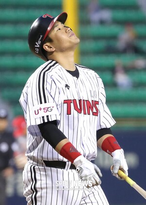 [스포티비뉴스=서울, 곽혜미 기자] 2019 신한은행 MY CAR KBO리그 LG 트윈스와 SK 와이번스의 경기가 22일 오후 서울 잠실야구장에서 열렸다. 4회말 2사 1,2루 상황에서 포스 스트라이크 낫 아웃을 당한 유강남이 아쉬워하고 있다. 스포티비뉴스=잠실, 곽혜미 기자