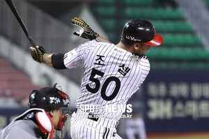 [스포티비뉴스=서울, 곽혜미 기자] 2019 신한은행 MY CAR KBO리그 LG 트윈스와 SK 와이번스의 경기가 22일 오후 서울 잠실야구장에서 열렸다. 9회말 1사 2루 LG 조셉이 헛스윙 삼진을 당하고 있다. 스포티비뉴스=잠실, 곽혜미 기자