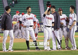[스포티비뉴스=서울, 곽혜미 기자] 2019 신한은행 MY CAR KBO리그 LG 트윈스와 SK 와이번스의 경기가 22일 오후 서울 잠실야구장에서 열렸다. 0-2로 패배한 LG 선수들이 아쉬워하고 있다. 스포티비뉴스=잠실, 곽혜미 기자