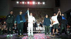 [스포티비뉴스=서울, 곽혜미 기자] 세계 최대 비보이 국제대회인 레드불 비씨원 캠프 코리아 2019가 26일 오후 서울 영등포구 여의도 위워크에서 열렸다. 우승자들의 손을 올려지고 있다. 스포티비뉴스=서울, 곽혜미 기자