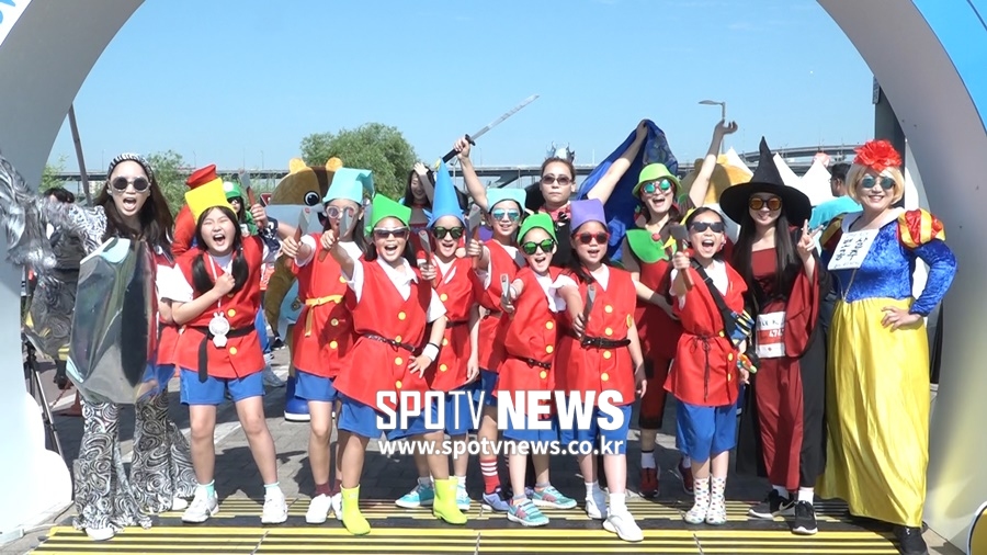 때문에 대회 현장에는 토르, 원더우먼, 캡틴 아메리카, 슈퍼 마리오, 백설공주와 난쟁이 등 각약각색의 의상을 입고 마라톤을 하는 사람들을 볼 수 있었다.