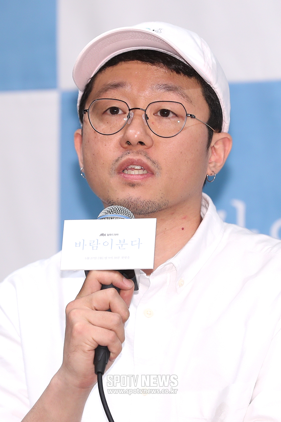 [스포티비뉴스=서울, 곽혜미 기자] JTBC 새 월화 드라마 '바람이 분다' 제작 발표회가 27일 오후 서울 강남구 논현동 임피리얼팰리스호텔에서 열렸다. 정정화 감독이 인사말을 하고 있다. 스포티비뉴스=서울, 곽혜미 기자
