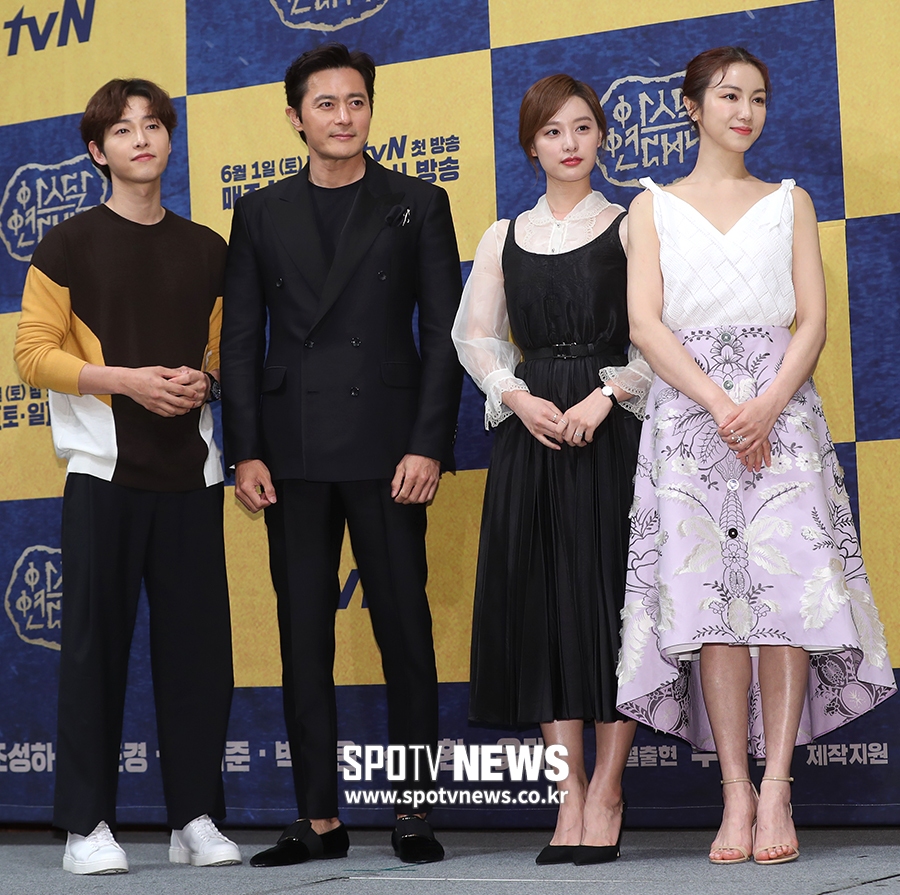 이어 박상연 작가는 "고대 인류사의 모습을 가져와서 가상의 땅에서 가상의 역사를 설정했다. 그 안에서 벌어지는 인물들의 사랑과 투쟁과 권력에 대한 이야기다. 어렵게 생각하시는 분들이 많은데 간단하게 이 드라마를 요약하겠다"며 "장동건과 김옥빈은 엄청난 분들이고 송중기 김지원은 아무 것도 가진 것이 없는 인물이다. 두 사람이 어떻게 엄청난 이들에게 맞서서 성장해나가는지를 보시면 된다"고 설명했다.