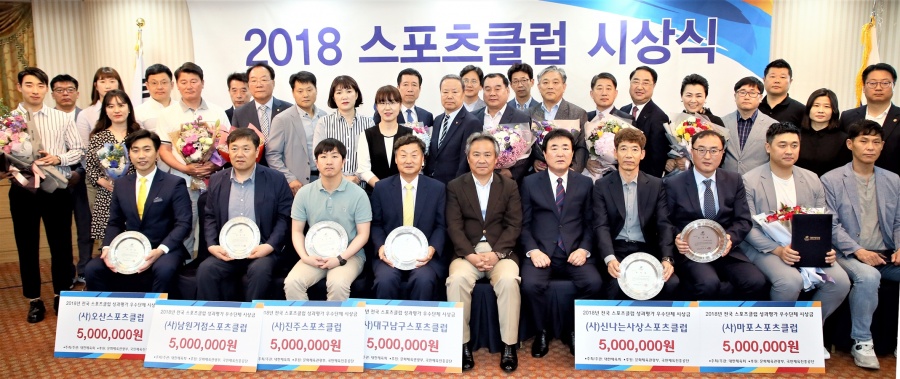 단체상은 2018년도 공공스포츠클럽 성과평가 우수단체로 대구남구스포츠클럽, 마포스포츠클럽, 신나는사상스포츠클럽, 오산스포츠클럽, 진주스포츠클럽, 남원거점스포츠클럽이 선정됐다. 대한체육회장상과 함께 상금 500만 원이 수여됐다.