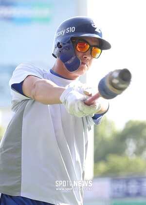 [스포티비뉴스=서울, 곽혜미 기자] 2019 신한은행 MY CAR KBO리그 두산 베어스와 삼성 라이온즈의 경기가 29일 오후 서울 잠실야구장에서 열린다. 삼성 구자욱이 훈련을 하고 있다. 스포티비뉴스=잠실, 곽혜미 기자