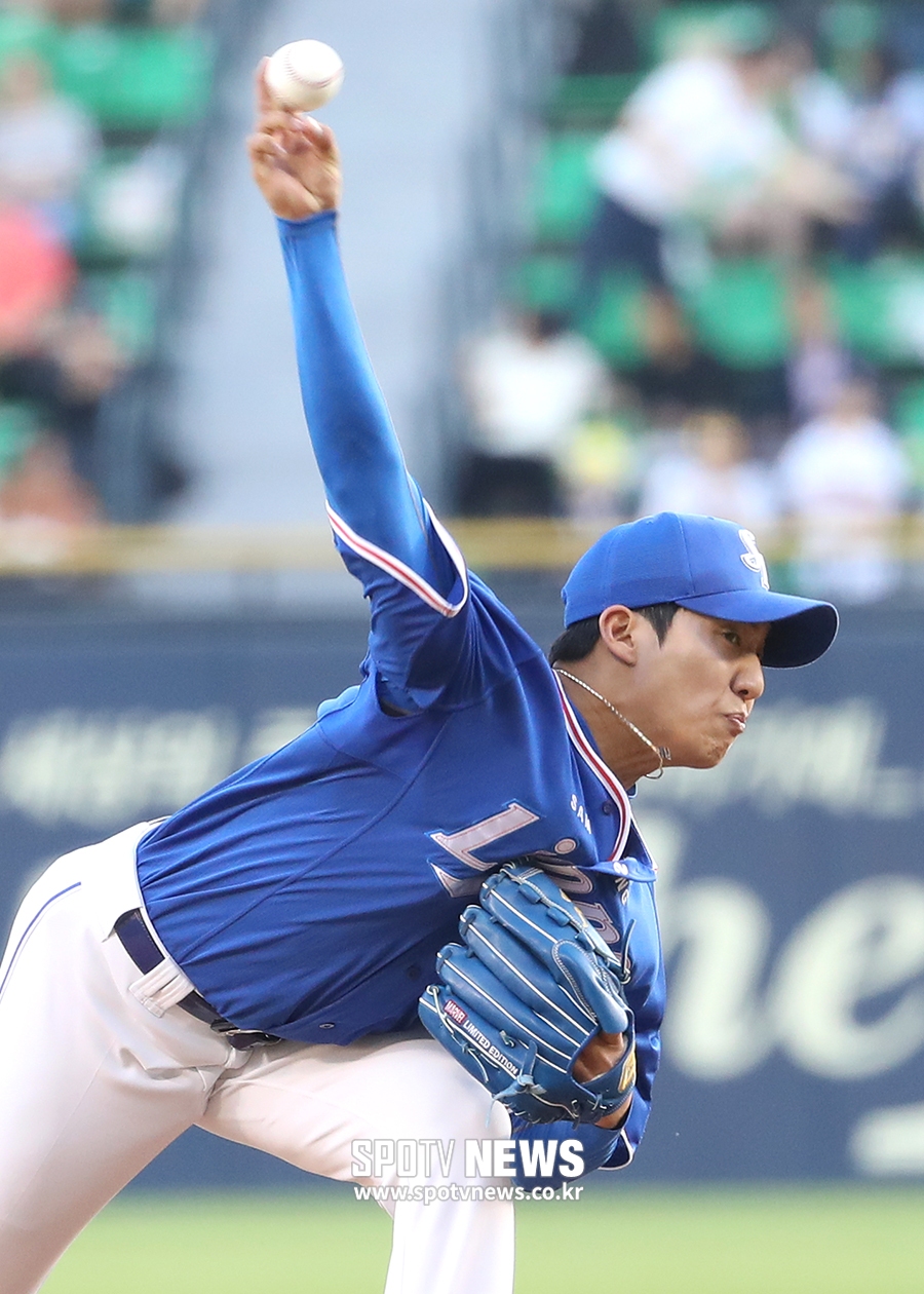 [스포티비뉴스=서울, 곽혜미 기자] 2019 신한은행 MY CAR KBO리그 두산 베어스와 삼성 라이온즈의 경기가 29일 오후 서울 잠실야구장에서 열렸다. 삼성 선발 원태인이 역투하고 있다. 스포티비뉴스=잠실, 곽혜미 기자
