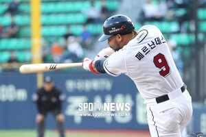 [스포티비뉴스=서울, 곽혜미 기자] 2019 신한은행 MY CAR KBO리그 두산 베어스와 삼성 라이온즈의 경기가 29일 오후 서울 잠실야구장에서 열렸다. 1회말 2사 두산 페르난데스가 2루타를 날리고 있다. 스포티비뉴스=잠실, 곽혜미 기자