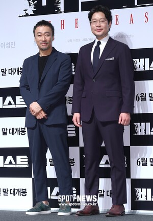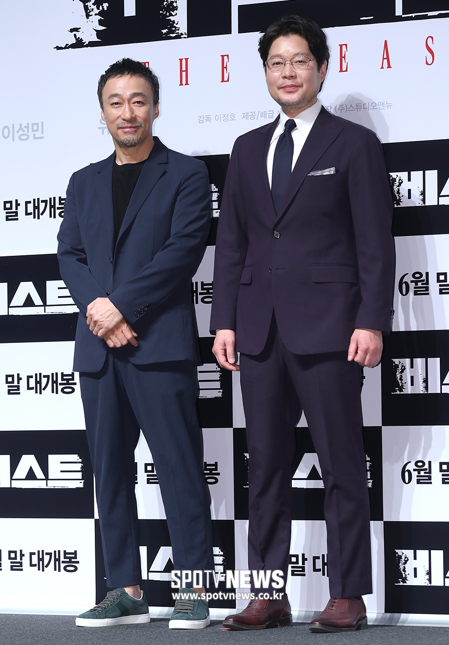 [스포티비뉴스=서울, 곽혜미 기자] 영화 '비스트' 제작 보고회가 30일 오전 서울 강남구 압구정CGV에서 열렸다. 배우 이성민, 유재명이 포즈를 취하고 있다. 스포티비뉴스=서울, 곽혜미 기자