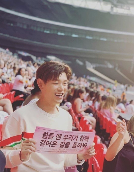 2일 오후 에릭남은 자신의 인스타그램에 방탄소년단이 공연하고 있는 영국 런던 웸블리 스타디움에 방문한 '인증샷'을 게재했다. 사진 속 에릭남은 '힘들 땐 우리가 함께 걸어온 길을 돌아봐'라고 적힌 플래카드를 들고 방탄소년단을 응원하고 있다.