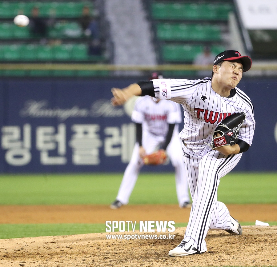 [스포티비뉴스=잠실, 곽혜미 기자] 2019 신한은행 MY CAR KBO리그 LG 트윈스와 KT 위즈의 경기가 4일 오후 서울 잠실야구장에서 열렸다. 7회초 LG 임찬규가 역투하고 있다. 스포티비뉴스=잠실, 곽혜미 기자
