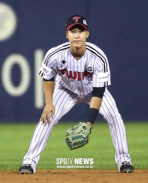 [스포티비뉴스=잠실, 곽혜미 기자] 2019 신한은행 MY CAR KBO리그 LG 트윈스와 KT 위즈의 경기가 4일 오후 서울 잠실야구장에서 열렸다. 9회초 유격수 대수비를 펼치고 있는 구본혁. 데뷔 첫 출전.스포티비뉴스=잠실, 곽혜미 기자
