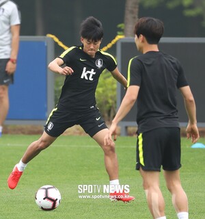 [스포티비뉴스=파주, 곽혜미 기자] 호주, 이란과 평가전을 갖는 한국 축구대표팀이 5일 오전 파주NFC(국가대표 트레이닝센터)에서 훈련을 진행했다. 이승우가 훈련을 하고 있다. 스포티비뉴스=파주, 곽혜미 기자