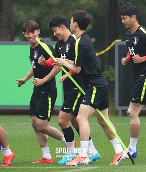 [스포티비뉴스=파주, 곽혜미 기자] 호주, 이란과 평가전을 갖는 한국 축구대표팀이 5일 오전 파주NFC(국가대표 트레이닝센터)에서 훈련을 진행했다. 이재성이 훈련 폴대에 걸리고 있다. 스포티비뉴스=파주, 곽혜미 기자