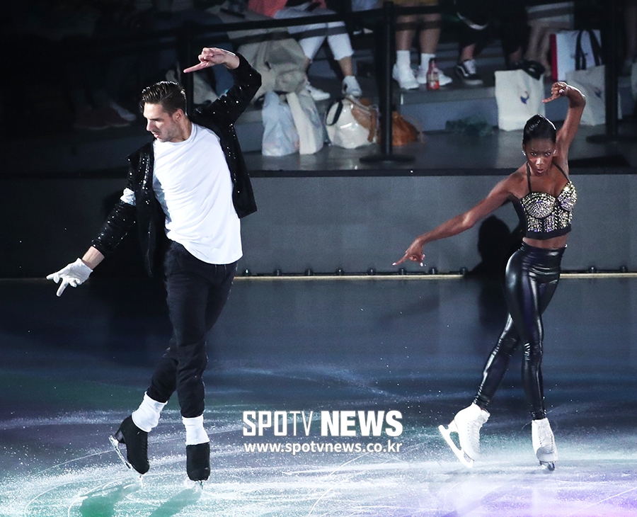 [스포티비뉴스=서울, 곽혜미 기자] 올댓스케이트 2019 아이스쇼가 6일 오후 서울 송파구 방이동 올림픽공원 체조경기장에서 열렸다. 바네사 제임스, 모건 시프레가 무대를 펼치고 있다. 스포티비뉴스=서울, 곽혜미 기자