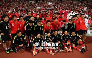 [스포티비뉴스=부산, 한희재 기자] 대한민국 축구대표팀과 호주 대표팀의 평가전이 7일 오후 부산아시아드주경기장에서 열렸다. 1-0으로 승리한 대표팀 선수들이 팬들과 기념촬영을 하고 있다.