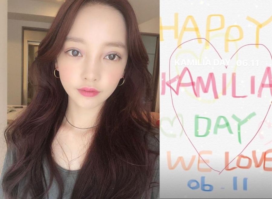 11일 구하라는 자신의 인스타그램 스토리에 "해피 카밀리아 데이 위 러브 06.11"이라는 손글씨과 함께 하트가 그려진 그림을 게재했다.