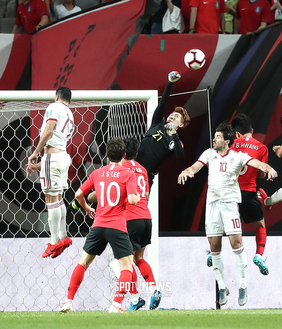 [스포티비뉴스=서울, 곽혜미 기자] 대한민국 축구대표팀과 이란 대표팀의 평가전이 11일 오후 서울월드컵경기장에서 열렸다. 조현우가 선방을 하고 있다. 스포티비뉴스=서울, 곽혜미 기자