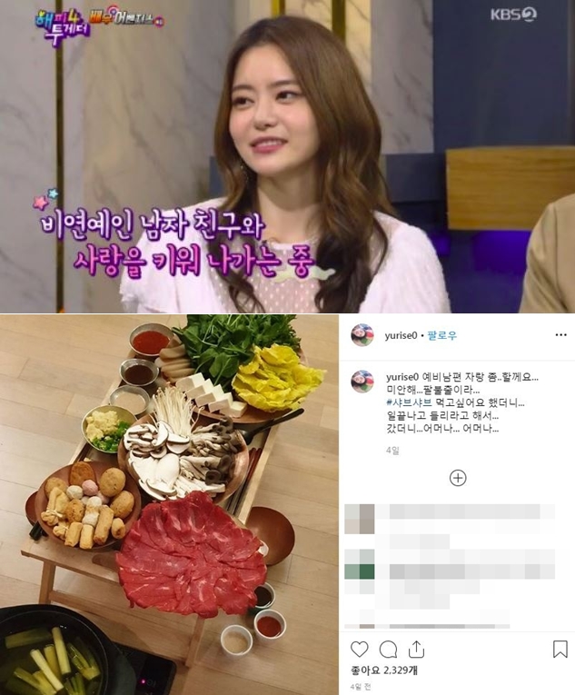 서유리는 인스타그램에서도 최병길PD를 향한 사랑을 감출 수 없었다. 그는 지난 9일 자신의 인스타그램에 사진 한 장을 게재하며 "예비남편 자랑 좀 하겠다. 미안하다, 팔불출이라”라고 너스레를 떨었다. 이어 “샤브샤브 먹고싶다고 했더니 일 끝나고 들리라고 해서 갔더니 어머나"라는 글을 남겼다. 공개된 사진 속에는 최병길PD가 정성스럽게 준비한 샤브샤브 재료들이 정갈히 정리되어 있다.