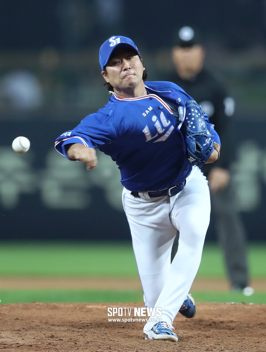 [스포티비뉴스=광주, 한희재 기자] KIA 타이거즈와 삼성 라이온즈의 2019 KBO리그 경기가 13일 오후 광주기아챔피언스필드에서 열렸다. 6회말 2사 1, 2루, 마운드에 오른 삼성 투수 우규민이 투구하고 있다. 스포티비뉴스=광주, 한희재 기자
