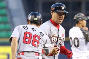 [스포티비뉴스=잠실, 곽혜미 기자] 2019 신한은행 MY CAR KBO리그 LG 트윈스와 SK 와이번스의 경기가 25일 오후 서울 잠실야구장에서 열렸다. 4회초 1사 1루 상황에서 SK 이재원이 역전 투런포를 날린 후 코치와 기쁨을 나누고 있다. 스포티비뉴스=잠실, 곽혜미 기자