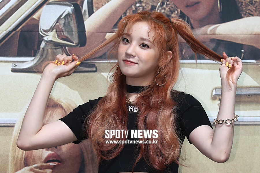 [스포티비뉴스=서울, 곽혜미 기자] 걸그룹 (여자)아이들 디지털 싱글 'Uh-Oh(어-오)' 앨범 발매 기념 쇼케이스가 26일 오후 서울 용산구 한남동 블루스퀘어에서 열렸다. (여자)아이들 우기가 포즈를 취하고 있다.