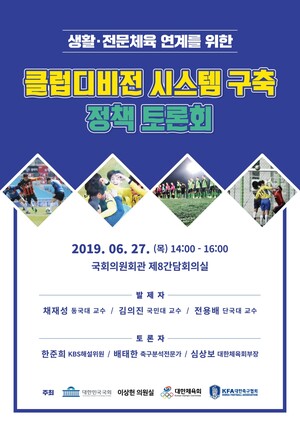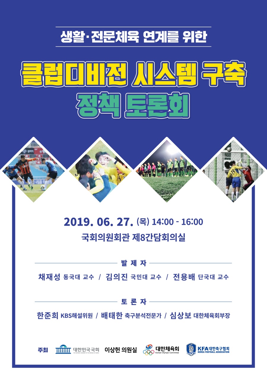 주제별 주요 발제자 및 토론자는 ▲채재성 동국대 교수와 한준희 KBS 해설위원(축구디비전시스템 현황 및 향후 지원방안 모색), ▲김의진 국민대 교수와 배태한 축구분석전문가(해외사례를 통한 디비전 발전방안), ▲전용배 단국대 교수와 심상보 대한체육회 스포츠클럽부 부장(축구디비전 시스템 사례를 통한 타 종목 확대)이다. 각 주제에 대한 발제 후 및 토론문 발표 후에는 패널 및 참가자의 종합 토론이 진행된다.