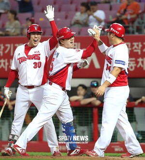 버티고 버틴 KIA는 8회 또 한 번 앞서갔다. 1사 주자 없는 상황에서 터커가 송은범을 상대로 우월 솔로 홈런을 날렸다. 안치홍의 좌전안타 뒤 이우성이 다시 담장을 넘겼다. 쐐기포였다. KIA는 9회 마무리 투수 문경찬을 투입해 3점 리드를 지켰다.